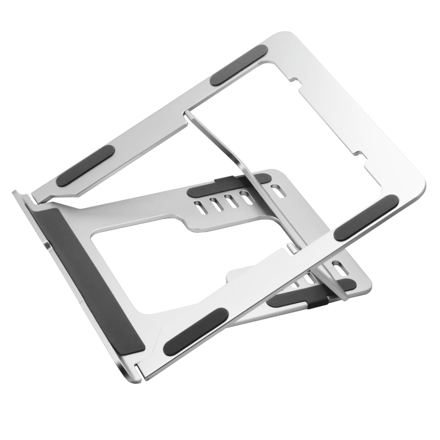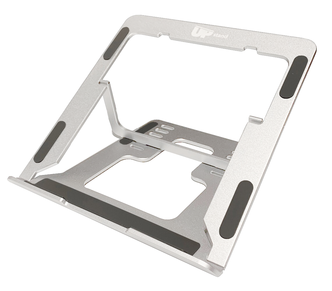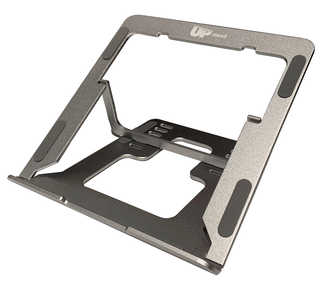 Strong, light, and stable, the UP Stand is designed as a versatile holder for your laptops, tablets, chromebooks, and portable monitors. It makes your work at home, at school, at the office, or on the road much more comfortable. Six tilt angles provide a convenient placement of the devices that allows you to find the ideal position when typing, watching, or reading. The angled placement of the device also opens up its fans allowing for more airflow and better cooling. Both sides of the stand are equipped with the silicon rubber pads that ensure a secure grip with devices and surfaces. The stand is made out of a durable aluminum alloy, which makes it light and easy to carry. It is foldable and slim, so it fits any bag and backpack. UP Stand has no separate parts but is made as one piece for durability and ease of use.